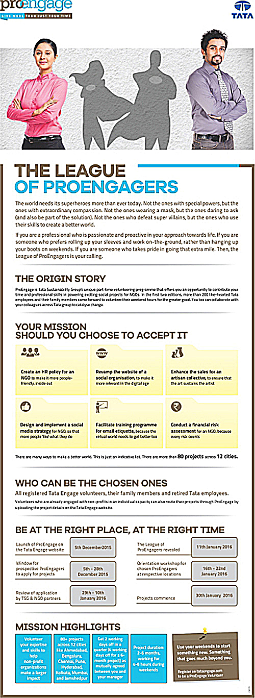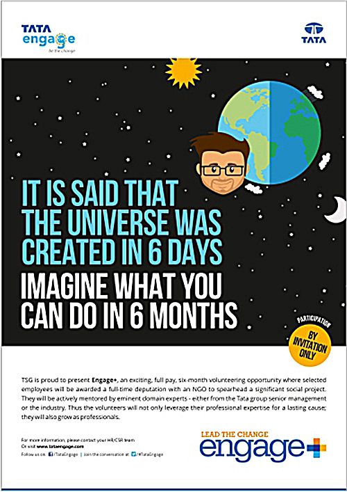 Tata Engage+ - A full-time, full-pay volunteering option with a six month deputation with the NGO