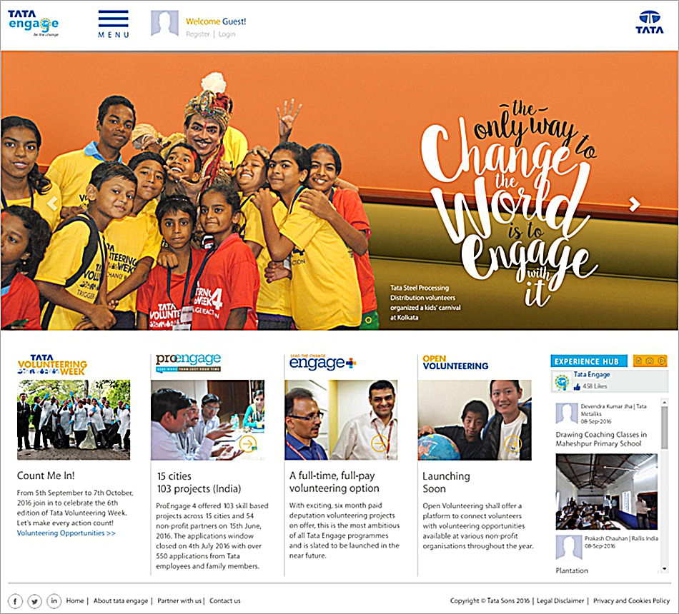 Tata Group’s Global Volunteering Portal does multiple things at a time. It attracts and motivates volunteers, dynamically updates projects, promotes sharing of good practices, enables peer recognition and incorporates comprehensive management modules for each volunteering vertical.